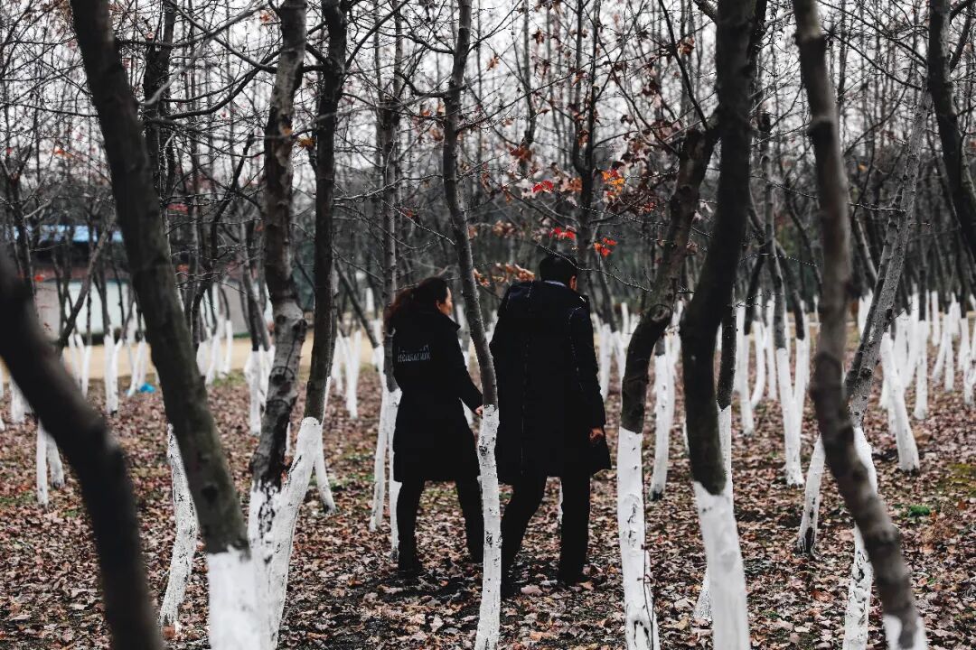 李玥和老公牵手走在树林。道阻且长,他们选择一起渡过(马龙龙 摄)